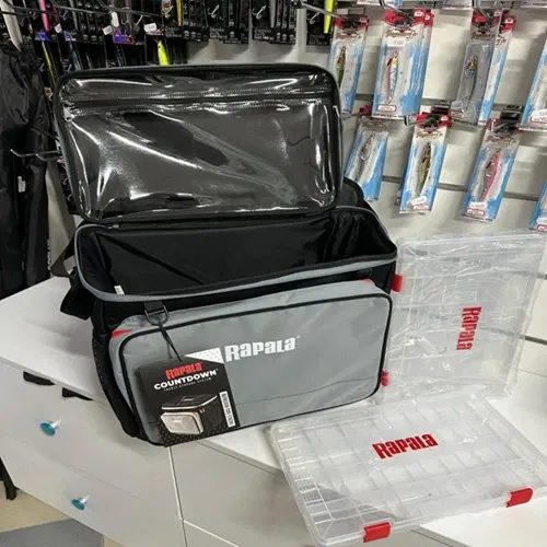 Rapala CountDown Tackle Bag Magnum è una borsa da pesca robusta e impermeabile progettata per pescatori che necessitano di massima capienza e organizzazione, ideale per lunghe sessioni o spedizioni di pesca. La parte principale può ospitare fino a sette scatole porta-attrezzi formato 3700 (due sono incluse), c'è spazio aggiuntivo per un'altra scatola 3700 sul coperchio.