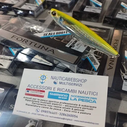 Artificiale Shimano exsence Fortuna è una piccola esca galleggiante progettata per le spigole e i predatori che si nutrono in superficie. Facile da animare, soprattutto in condizioni di calma, il Fortuna adotta una posizione di coda bassa quando è ferma e un'azione "walk the dog" quando viene recuperata con un movimento di stop-start. La tecnologia Scale Boost aumenta l'attrazione visiva, soprattutto in acque limpide.
