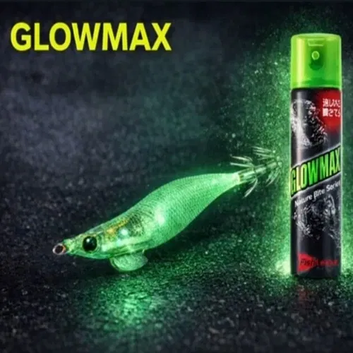 Spray attrattore luminescente GLOWMAX studiato per l'Eging Fishing Si tratta di un mix di ingredienti naturali, unico nel suo genere, che sono stati combinati con un materiale fosforescente che emette luce alle lunghezze d'onda preferite di calamari, seppie e totani. Il "sapore, l'olfatto" e la "luce" stimolano i calamari, aumentando il loro desiderio di nutrirsi.