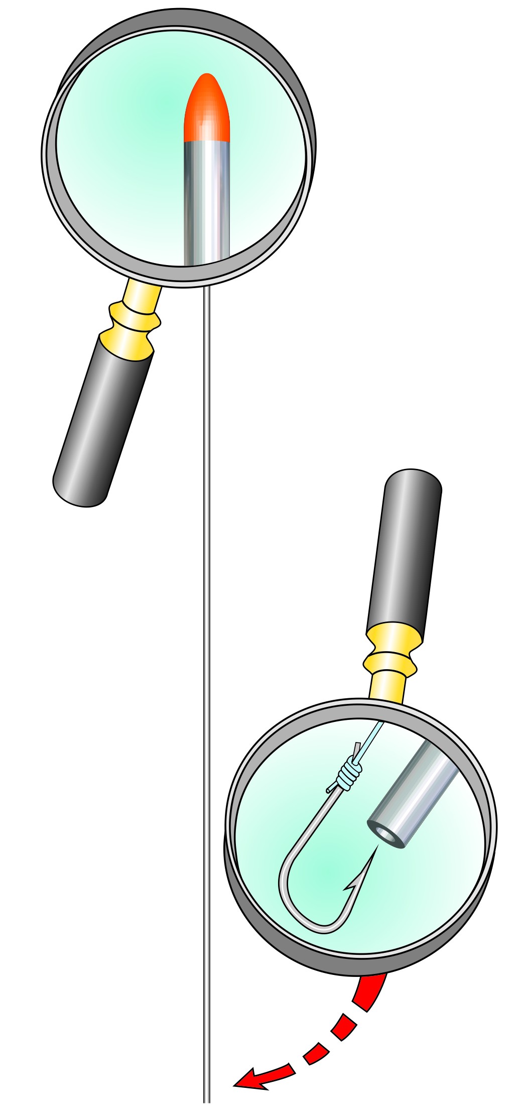 Aghi infilavermi tubolari in acciaio inox con punta in materiale plastico super scorrevole. Il colore fluorescente visibilissimo della punta e la sua forma ogivale servono a prevenire deviazioni indesiderate della traiettoria di innesco.
