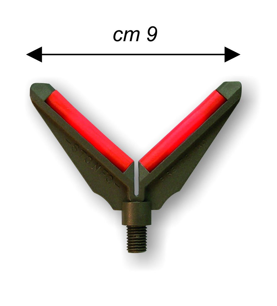 Appoggiacanna in materiale plastico resistentissimo con inserti in gomma morbida per non danneggiare la canna.