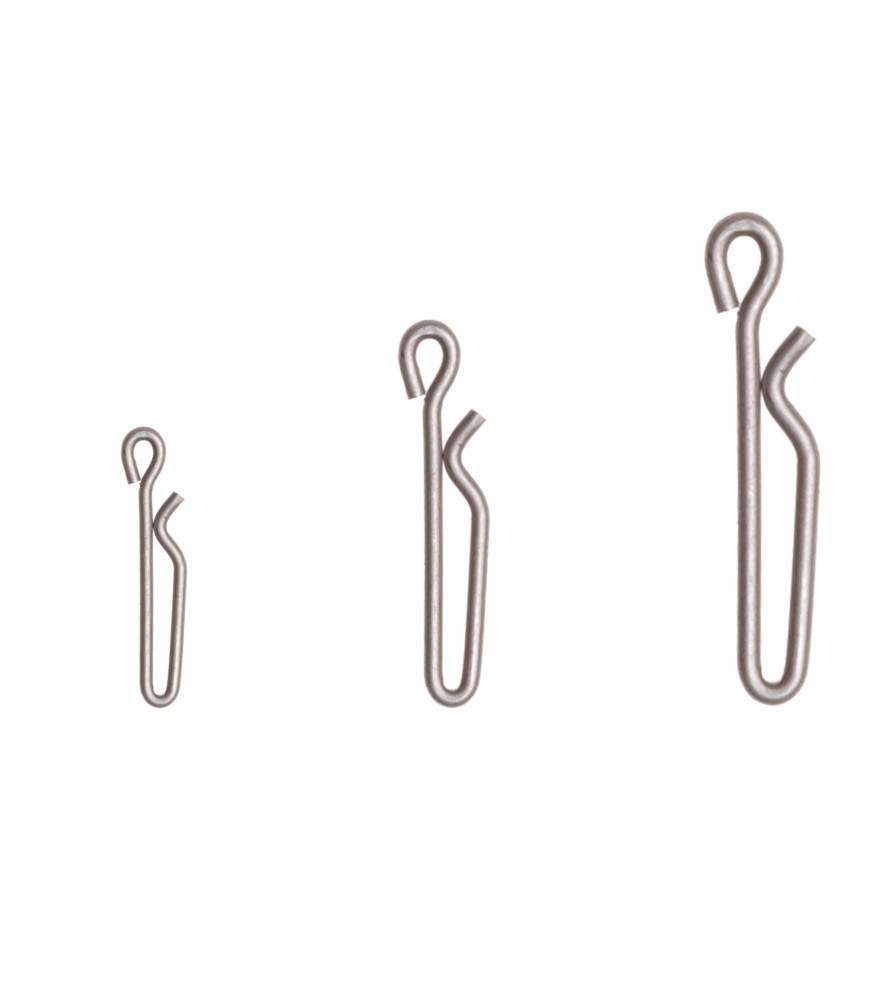 Moschettoni in acciaio inox per connettere rapidamente il terminale allo shock leader. Forniti completi di girelle. Disponibile in 3 misure.